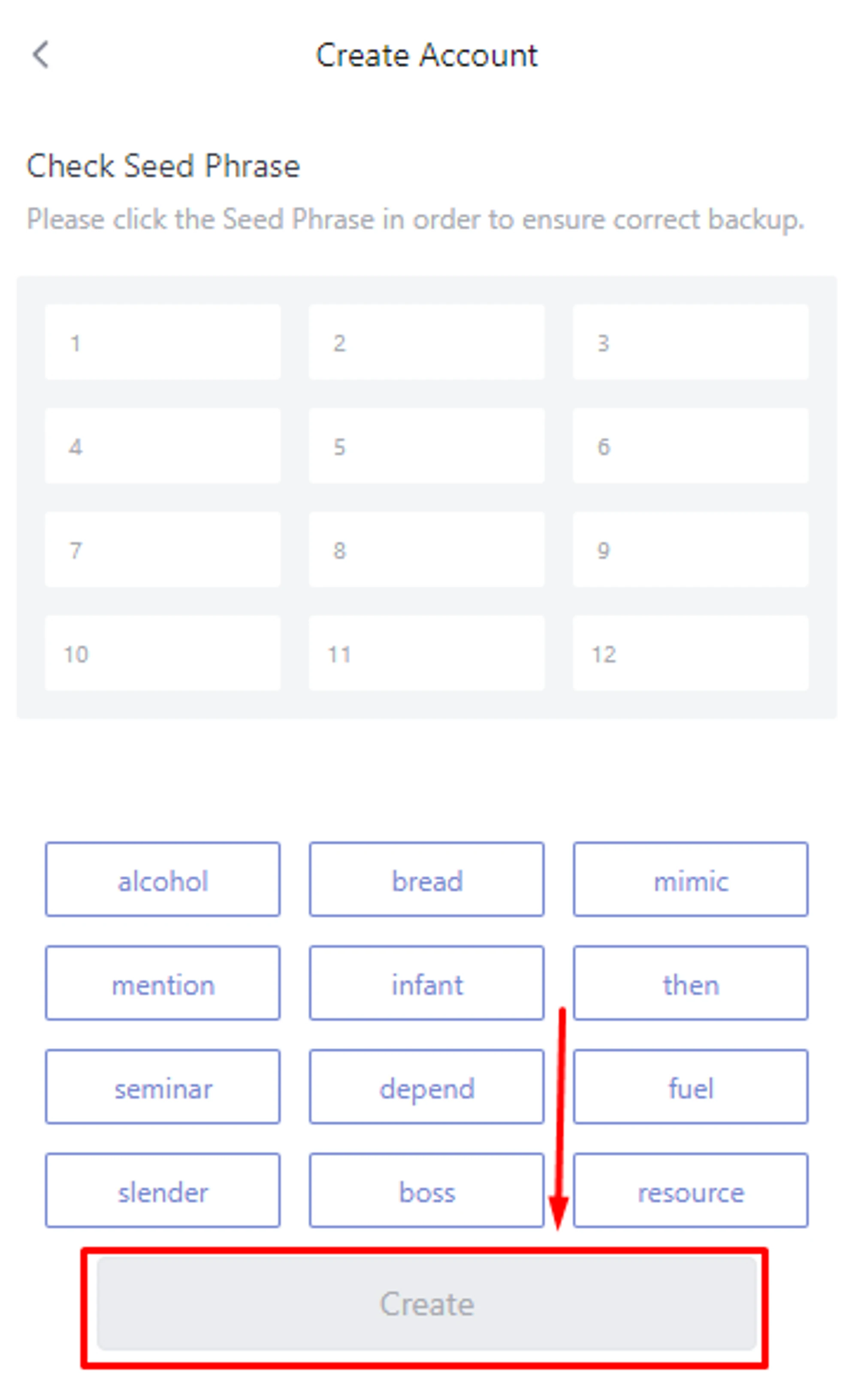Гаманець перевірить, наскільки добре ви запам'ятали вашу секретну фразу та порядок слів. Вас попросять ввести слова у правильному порядку для підтвердження.