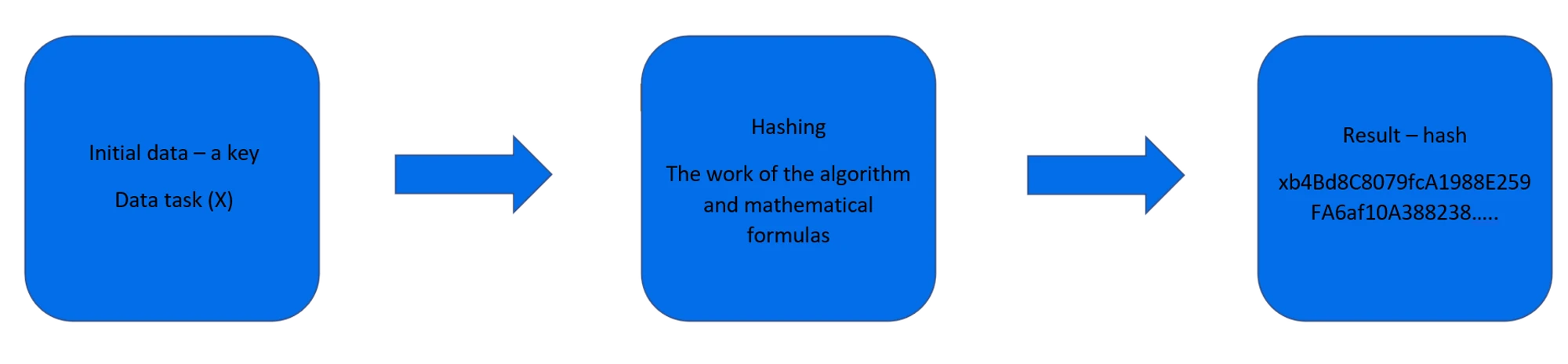 - Hash es el resultado del algoritmo. Visualización de datos en forma de una cadena, única para el conjunto original de información.