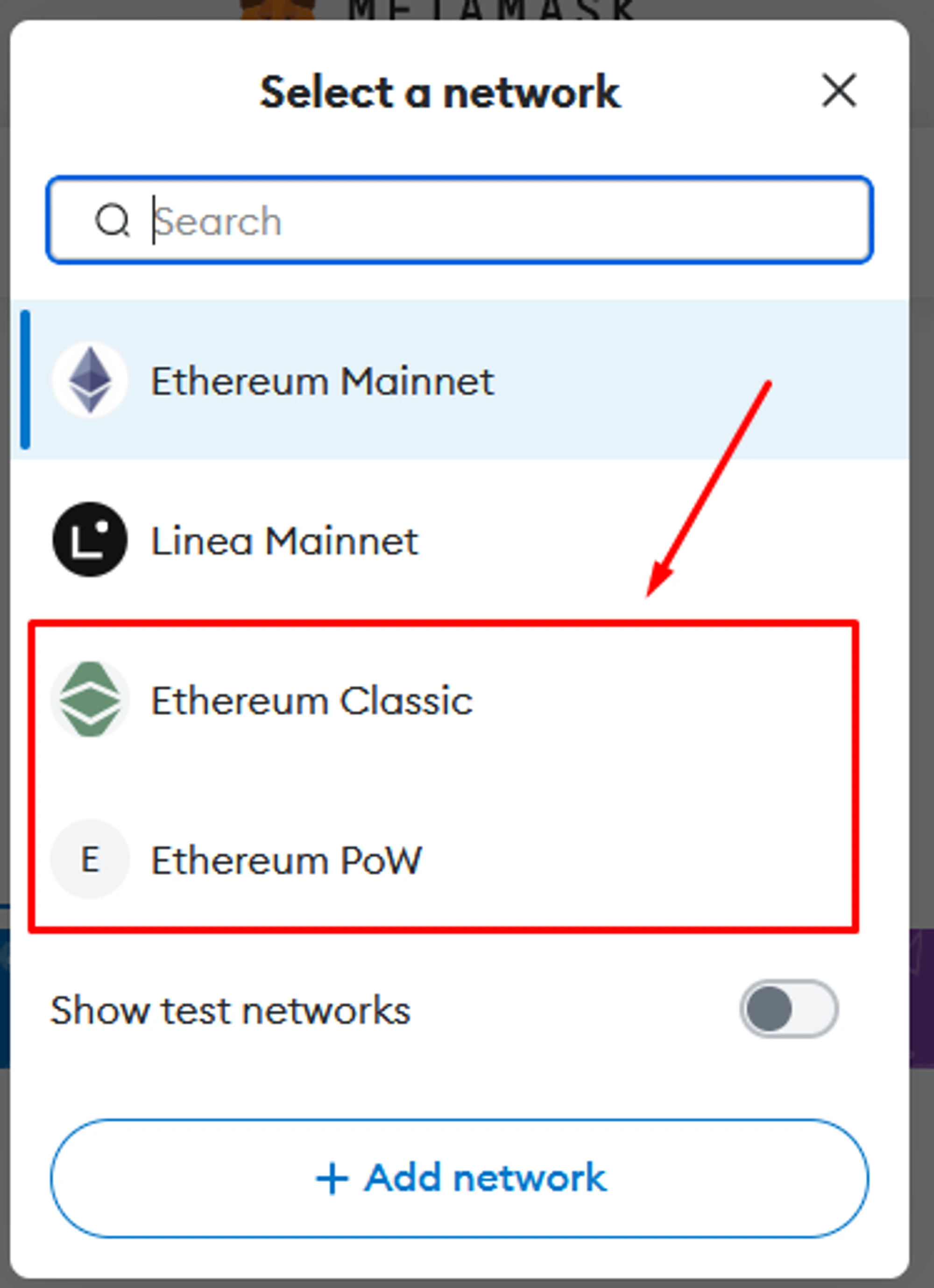 How to add ETC, ETHW, OCTA in Metamask