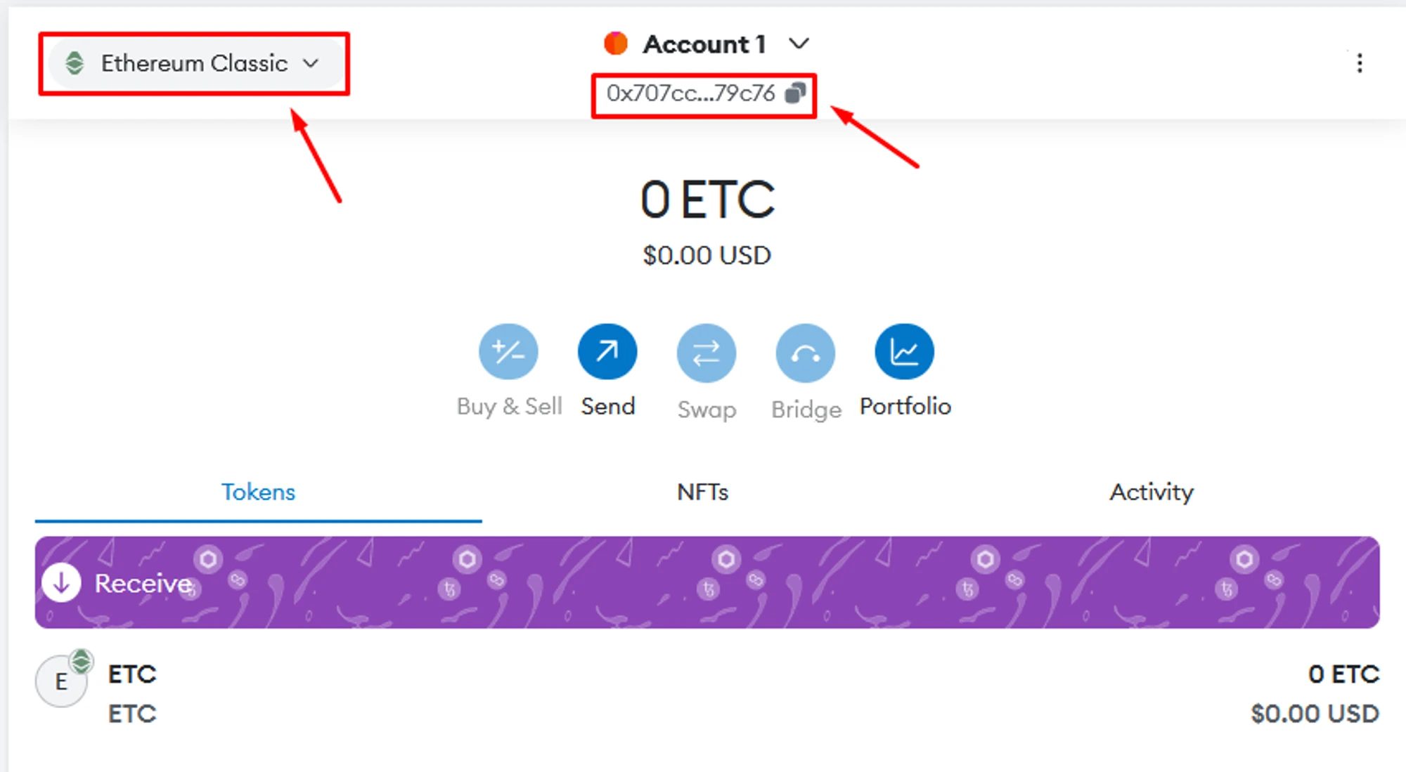 Your wallet is ready to work in the new network. You can copy the wallet address and use it for mining and receiving coins.