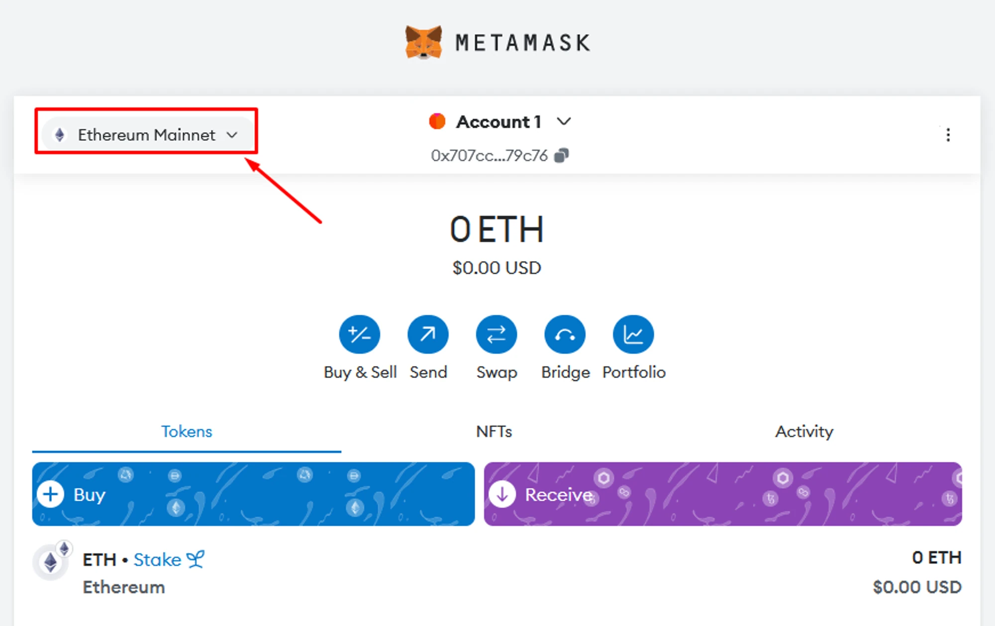 Metamask wallet uses Ethereum Mainnet (ETH coin) as the default network.