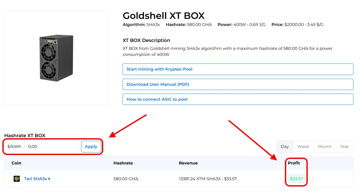 👉 Calculez la rentabilité du Goldshell XT BOX avec notre calculateur de minage