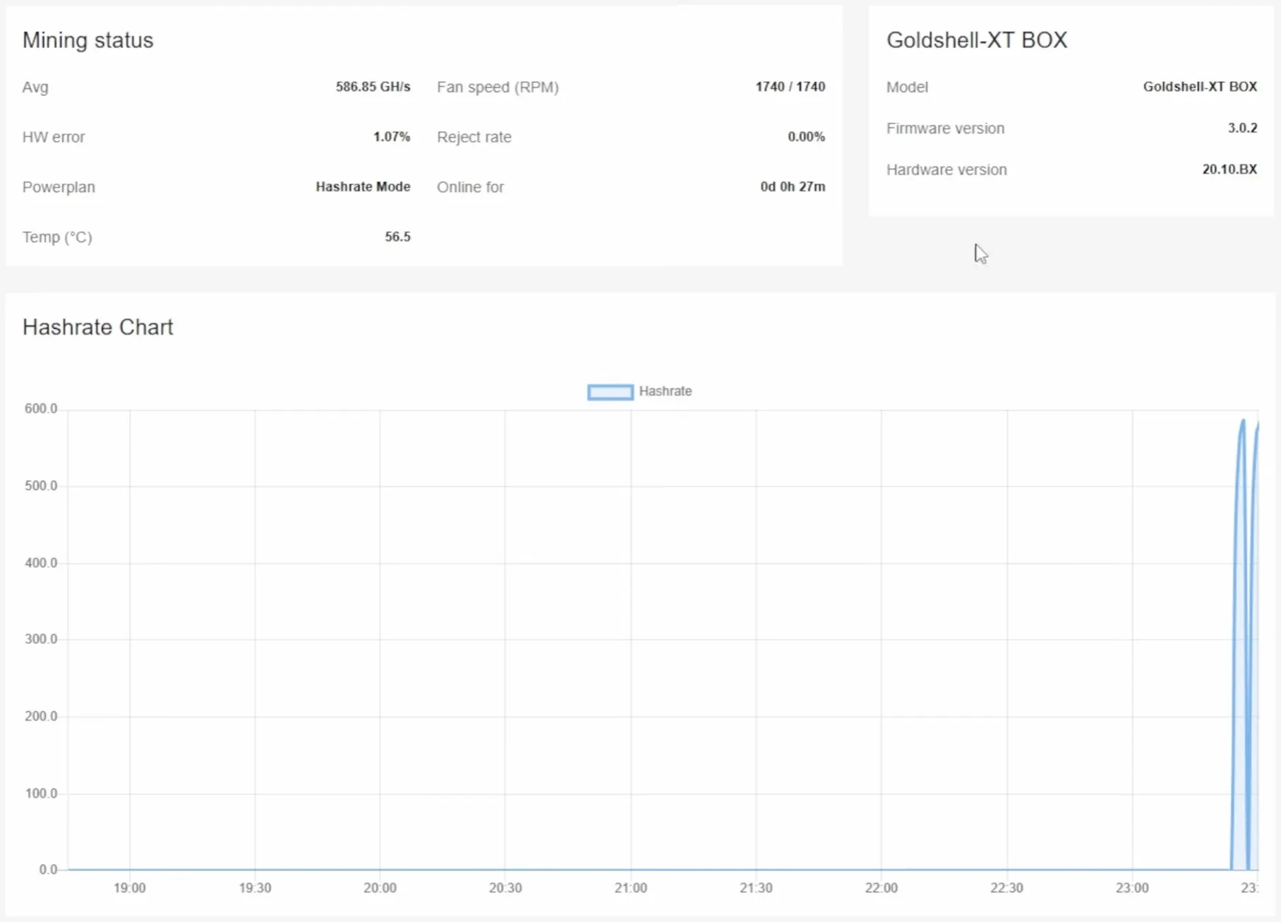 Hashrate du Goldshell XT BOX