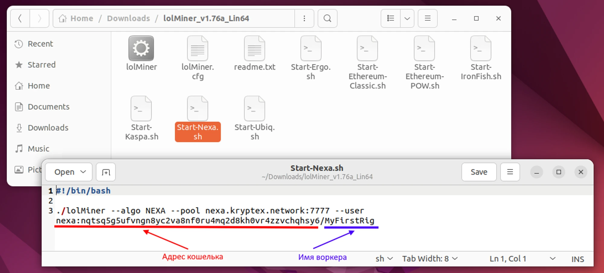 Start-Nexa.sh.Замените адрес кошелька после